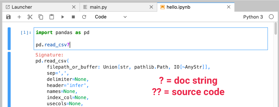 ? and ??These are actually iPython features, and will also work in an iPython kernel: