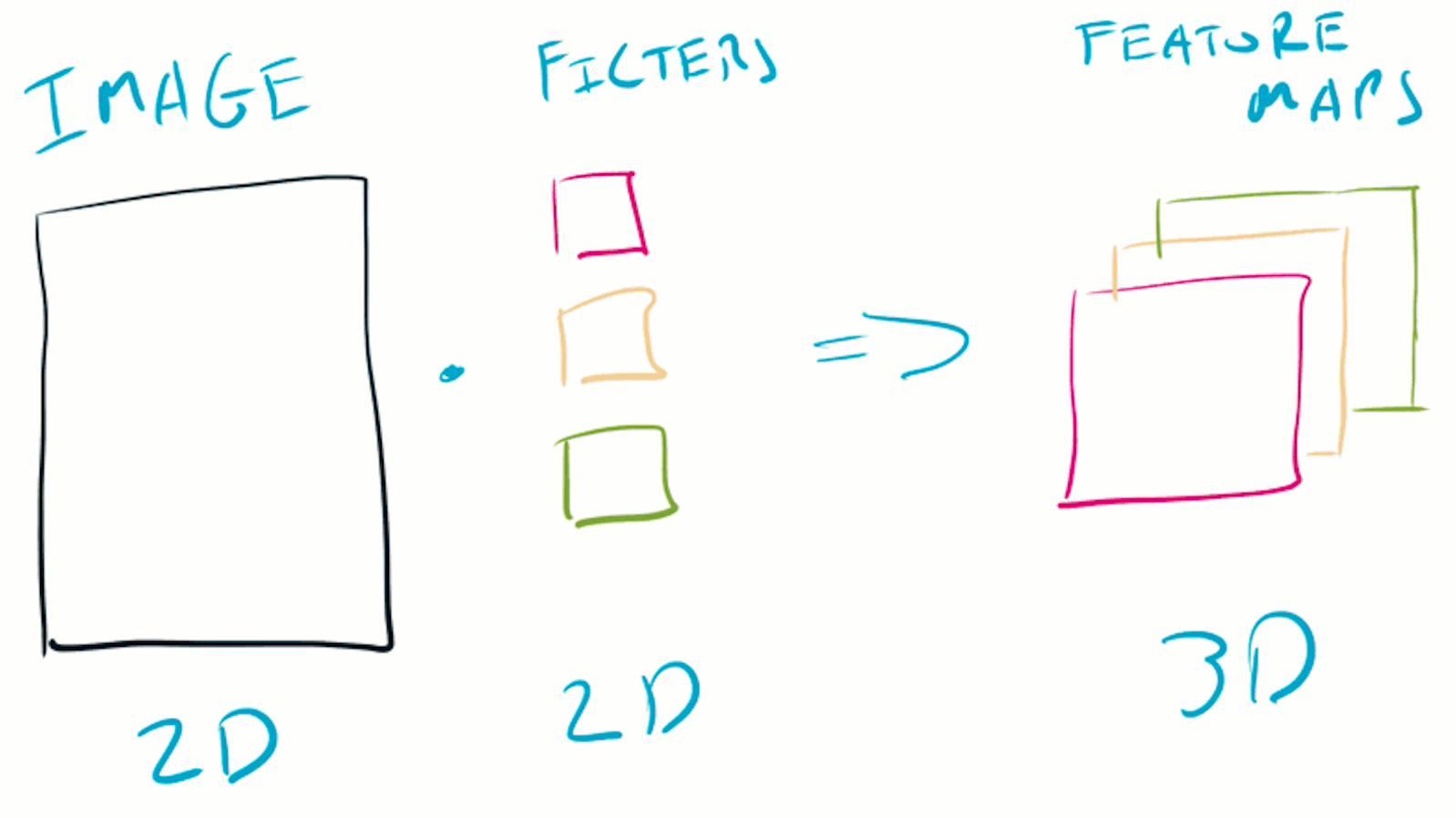 The feature maps produced by each filter are concatenated, resulting in a 3D volume (the length of the third dimension being the number of filters).