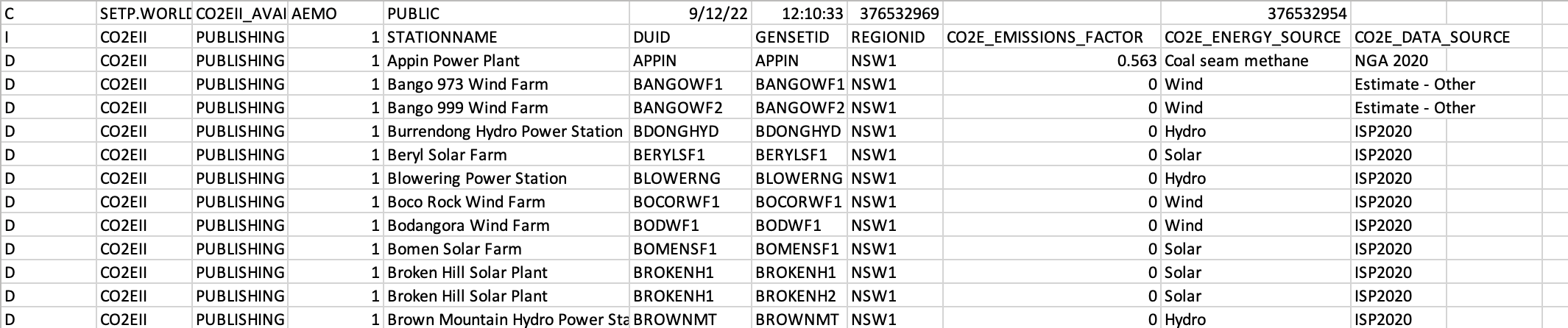 <PriceSetting PeriodID="2022-01-01T04:05:00+10:00" RegionID="NSW1" Market="Energy" Price="87.69011" Unit="BW03" DispatchedMarket="R5RE" BandNo="1" Increase="-0.52632" RRNBandPrice="1" BandCost="-0.526316" />The MMSDM provides both actual data and forecasts for a range of variables - including prices, demand and electricity flows.