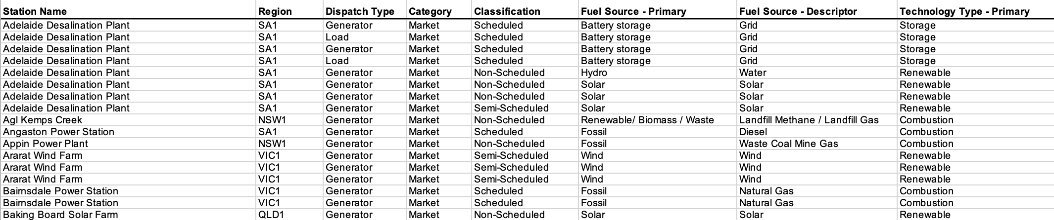 Both of these files are linked by a Dispatchable Unit Identifier (DUID), which identifies a generating unit.